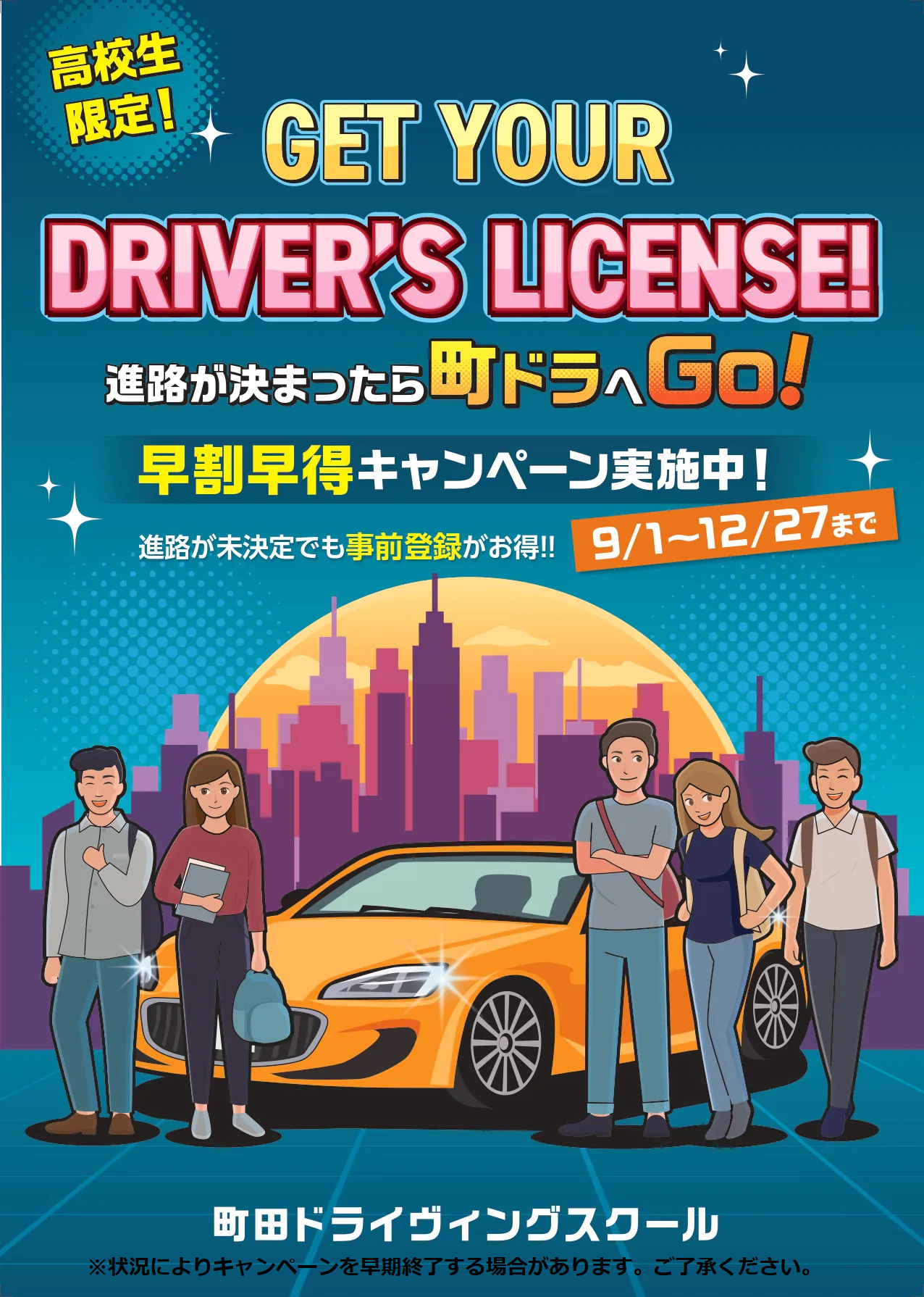 まだ進路が決定していない方、また早生まれのため入校条件(誕生月の2ヶ月前から入校可能です)を満たしていない方は、「早割早得(事前登録)キャンペーン」(普通車のみ)をご利用ください。登録をいただきますと登録月のキャンペーン料金・特典にてご入校いただけます。以下に、「早割早得キャンペーン」の登録方法をご案内します。