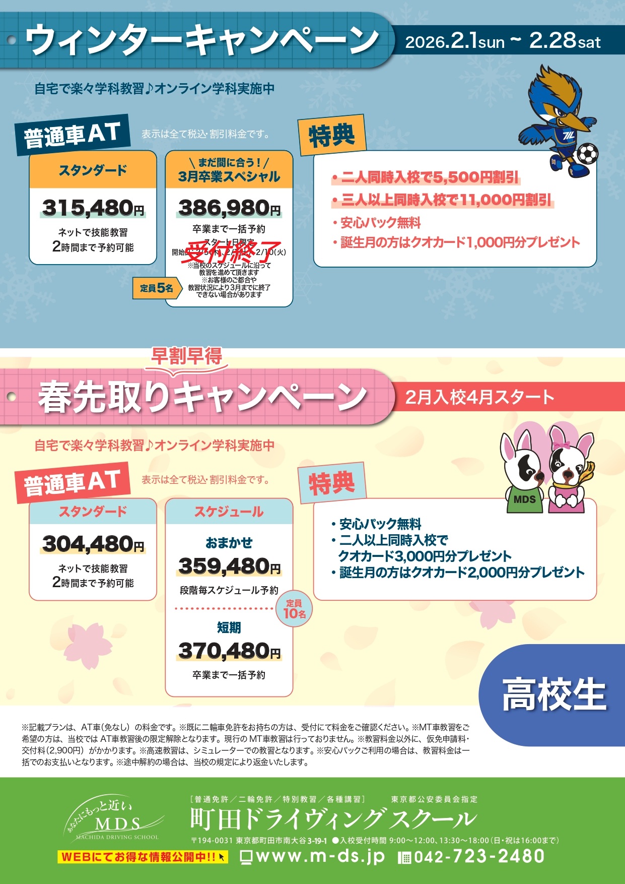 ※お客様のご都合や教習状況により3月中の卒業ができない場合があります。